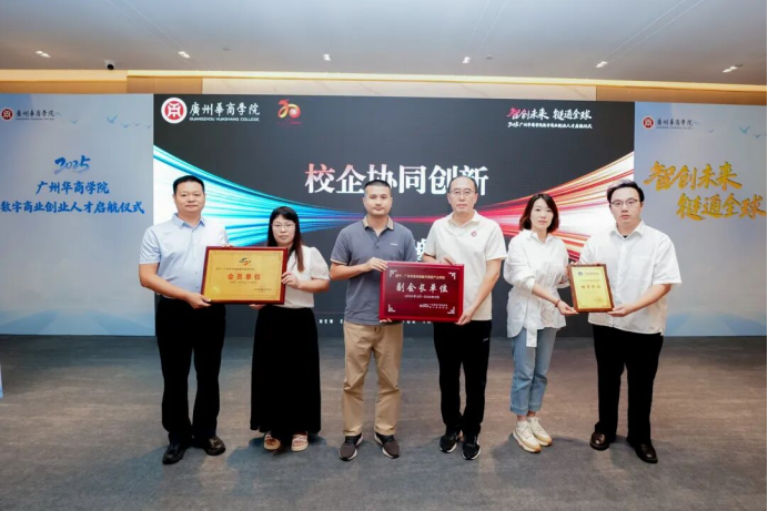 广东省电子商务协会、广东省网商协会、广东省跨境电子商务协会代表分别授牌,数字经贸学院与创新创业学院相关负责人接受授牌。余家军副校长为三家协会授予“创新创业校外实践基地”牌匾。